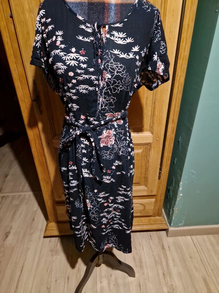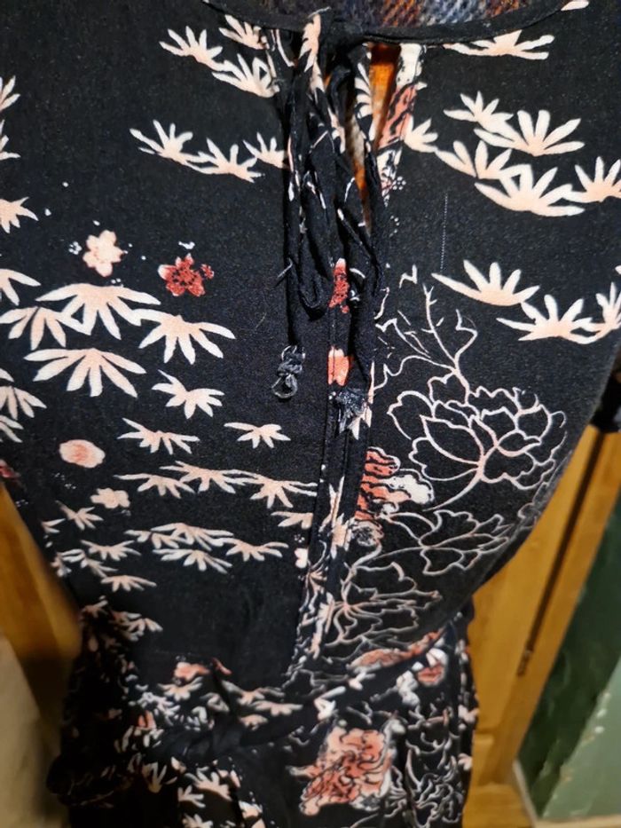 Superbe robe yessica Taille 38 Longueur midi Noire avec détails imprimés roses Fleurs et dessins type asiatiques Matiere type jersey très agréable Attention légers défauts dans le tissu mais cela ne se voit pas du tt #asiatique #japonais #japon #japan #taille38 #yessica #asia