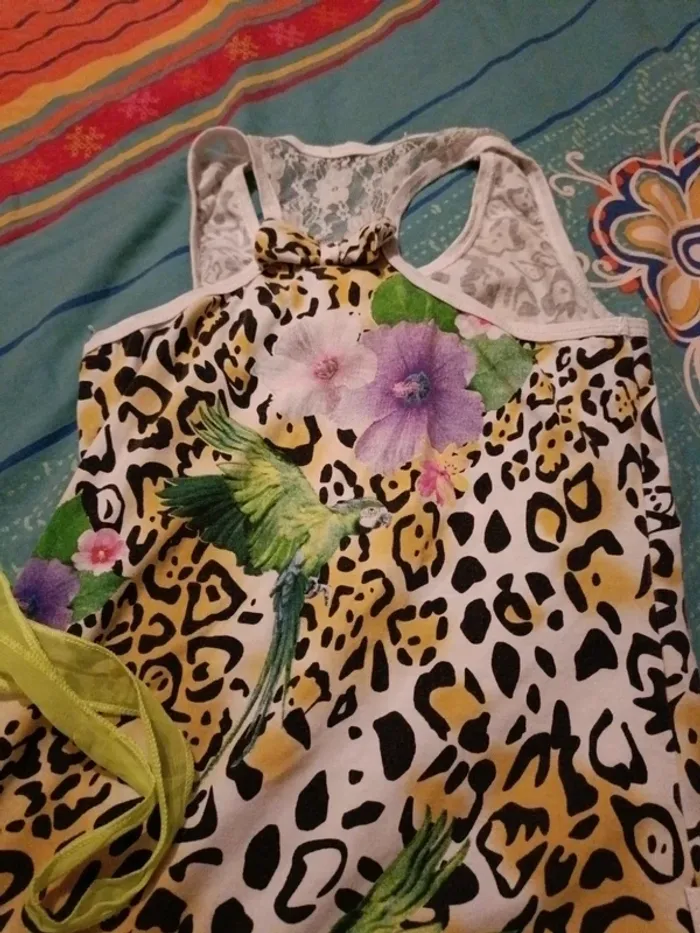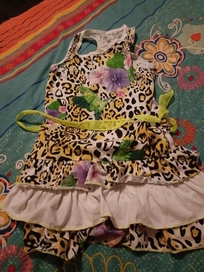 Jolie robe 12 ans fluo panthère perroquet - photo numéro 1