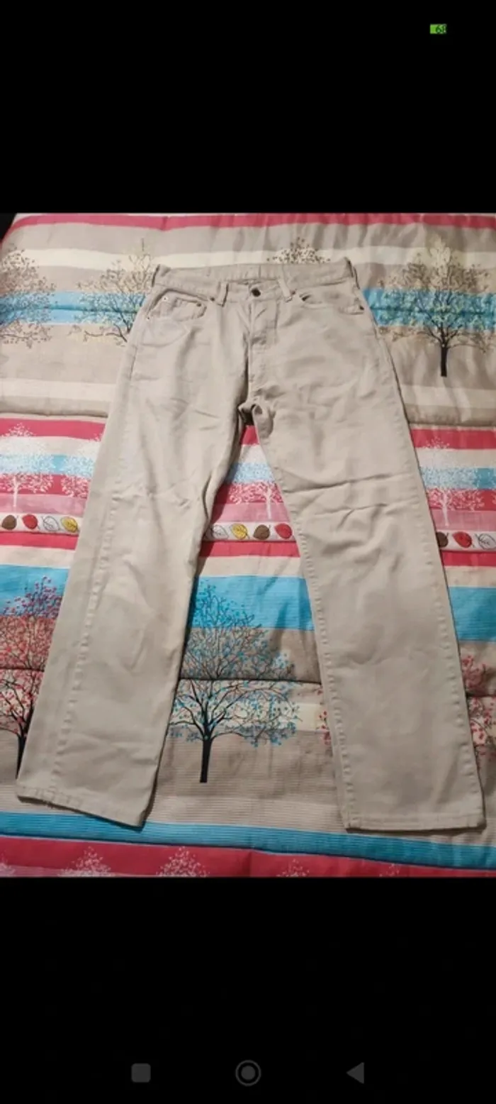 En bon état pas de trous ni de tâches à noter traces de frottement avec les chaussures dans le bas du jean Taille à plat 41 longueur totale 104 longueur depuis l'entrejambe 75 #estrella17230hommet42