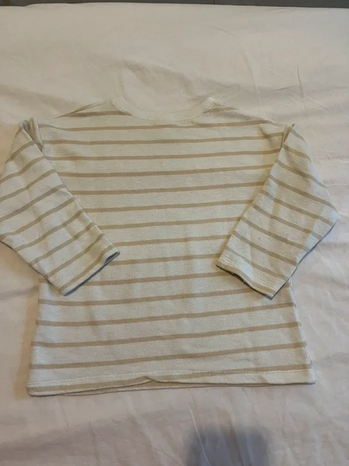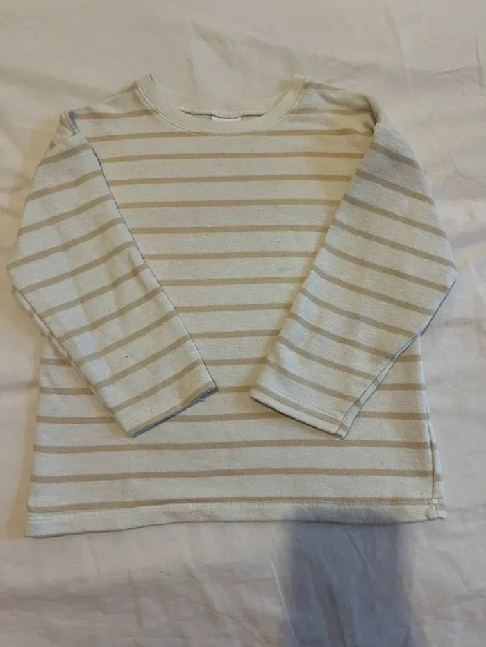 Pull rayé marinière blanc beige 4 5 ans 110cm Zara #01