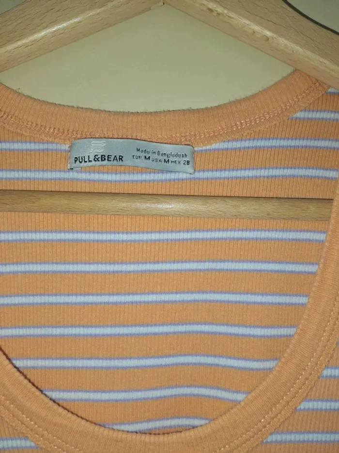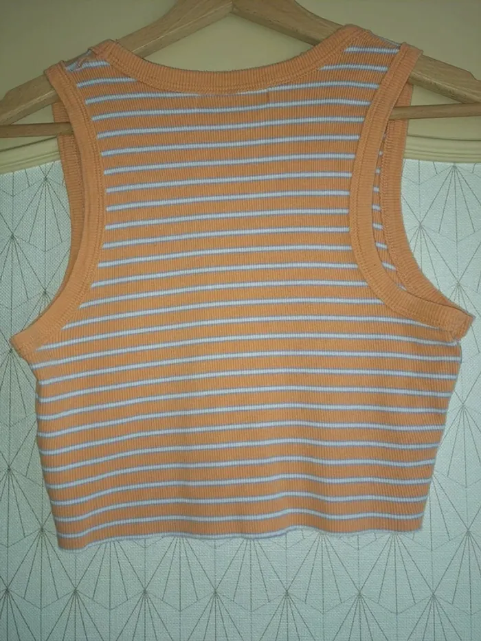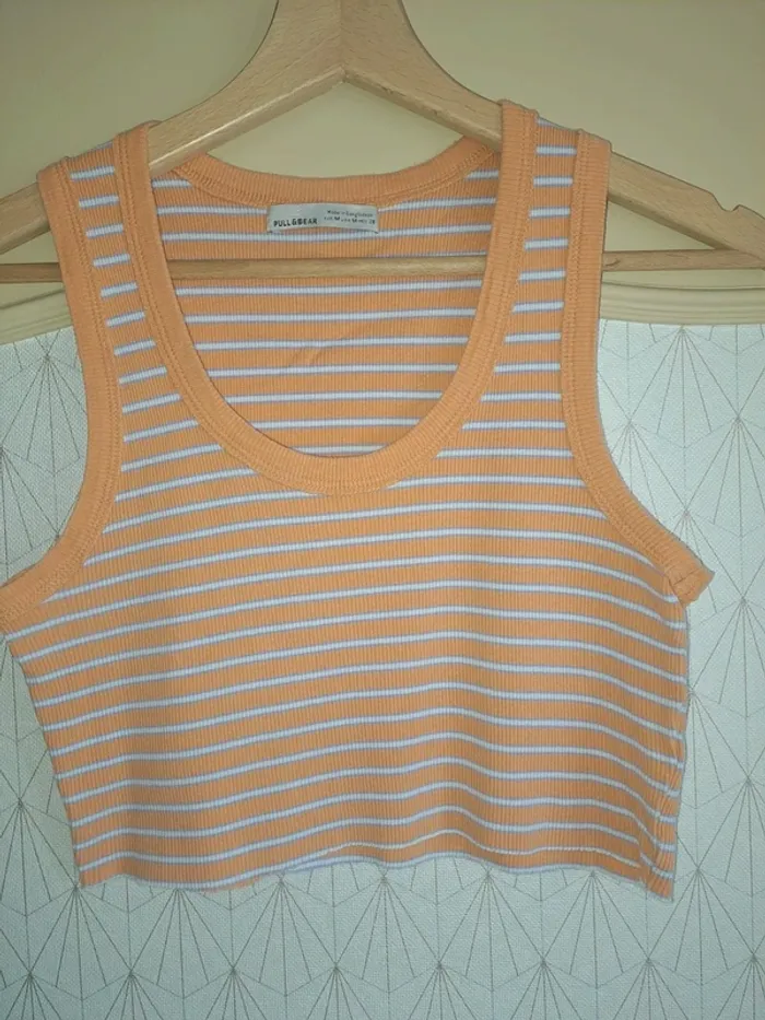 Débardeur court femme M pull & bear orange blanc tbe - photo numéro 3