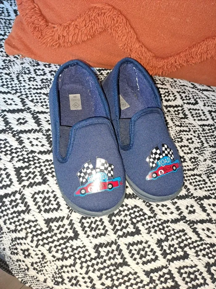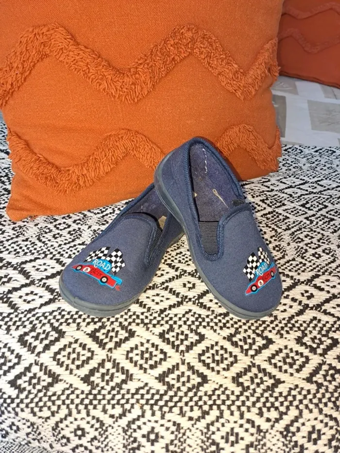Chaussons bleu tex basic 29 enfant comme neufs semelles gomme rebondissantes confortables - photo numéro 1