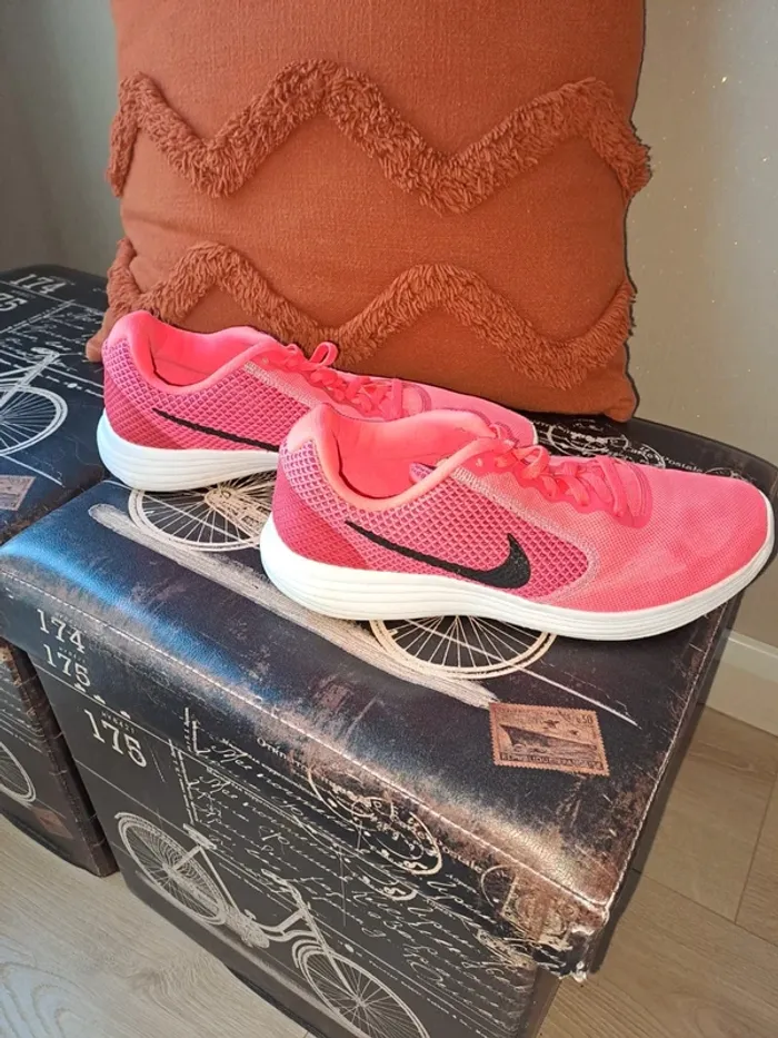 Nike révolution 3 T38.5 comme neuves. Rose blanc et noir. Super état. Sans boîte - photo numéro 1