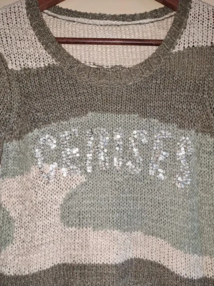 Magnifique pull court femme S étiquette coupée le temps des cerises 🍒 comme neuf kaki beige sequins