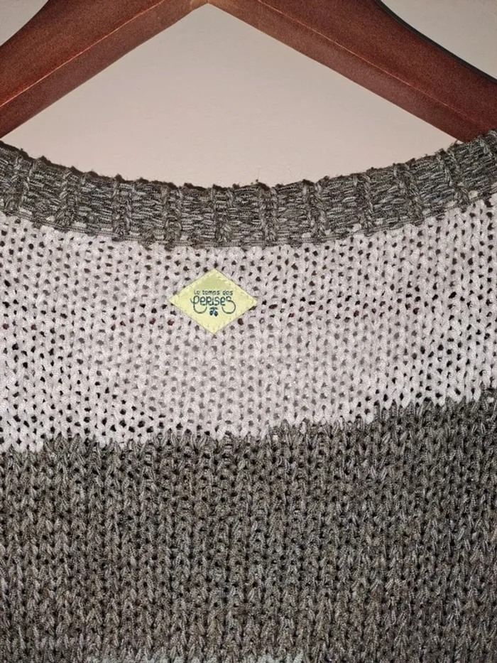 Magnifique pull court femme S étiquette coupée le temps des cerises 🍒 comme neuf kaki beige sequins - photo numéro 2