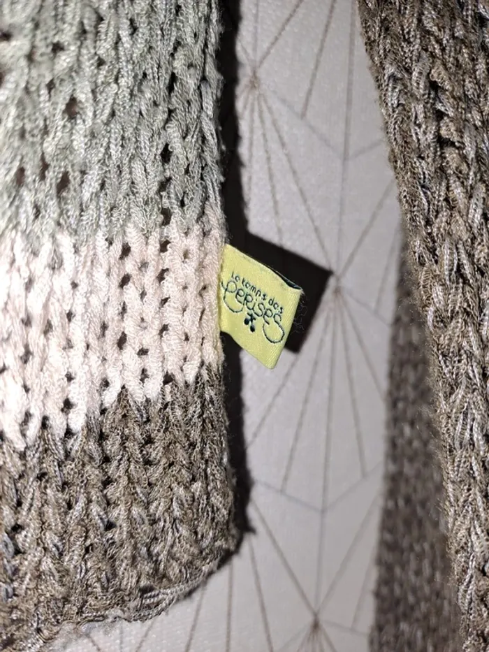 Magnifique pull court femme S étiquette coupée le temps des cerises 🍒 comme neuf kaki beige sequins - photo numéro 3