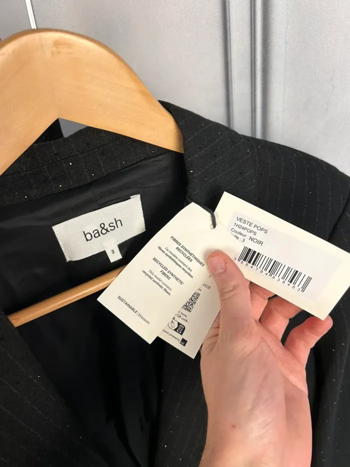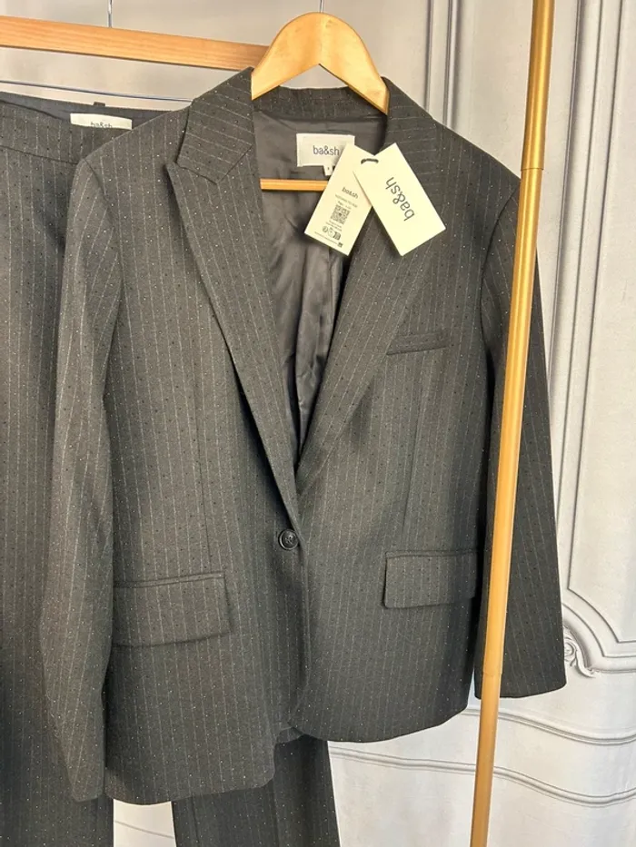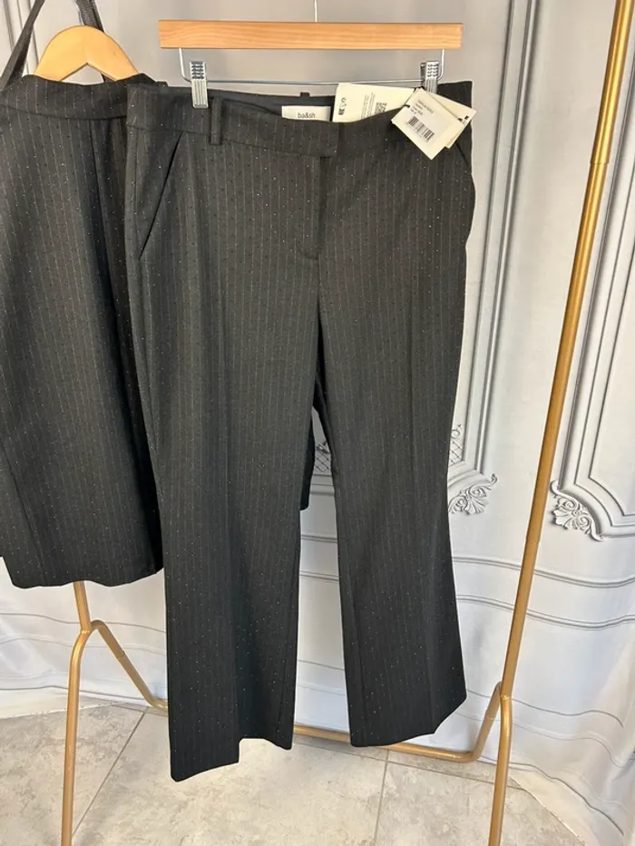 Neuf avec étiquette 🏷️ Magnifique ensemble tailleur pantalon + veste Ba&sh noir avec strass Taille : 3 / 42 Collection récente Prix de l’ensemble neuf : 195€ + 315€ soit 510€