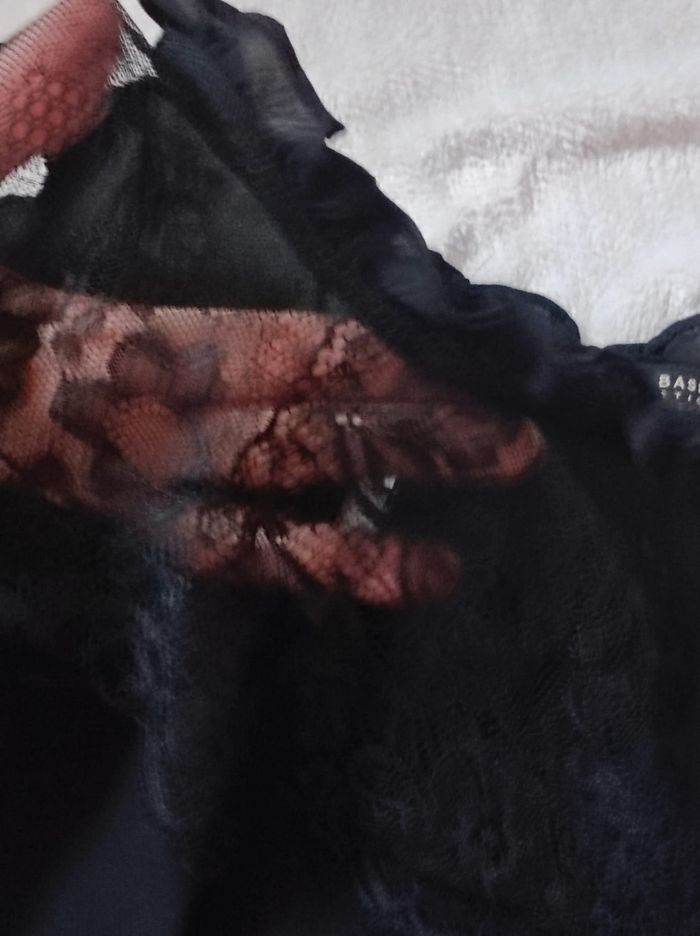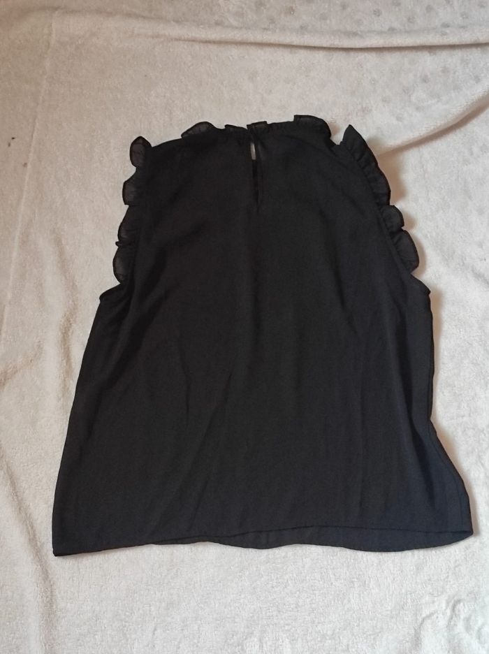 jolie haut / blouse sans manches à encolure dentelle partie du haut. Fluide, légère et semi transparente. Attache de petit bouton à la nuque. Marque zara en taille M. En parfait état.