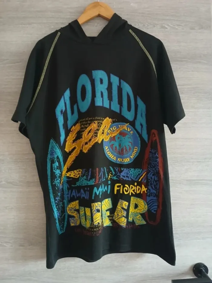 Sweat imprimé manches courtes avec capuche Taille unique Fabriqué en France