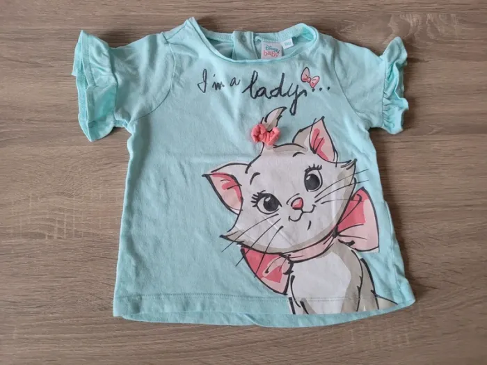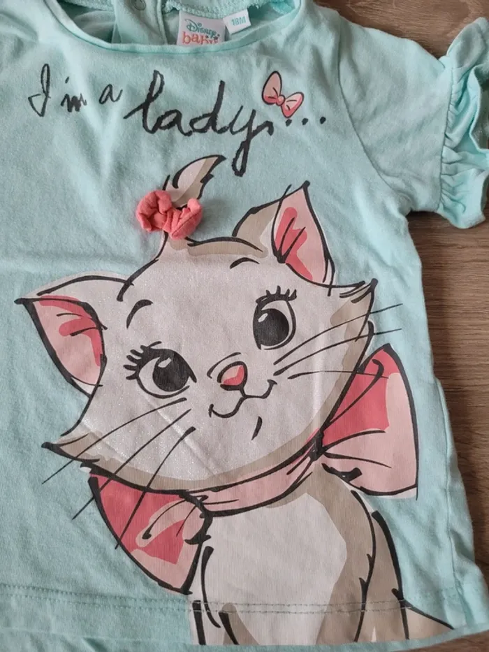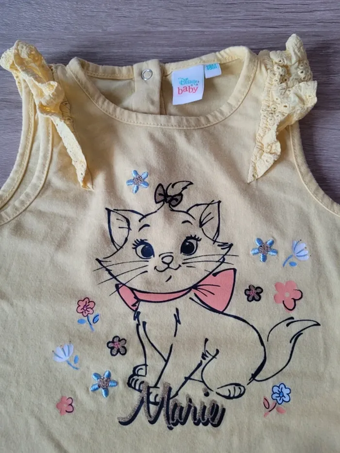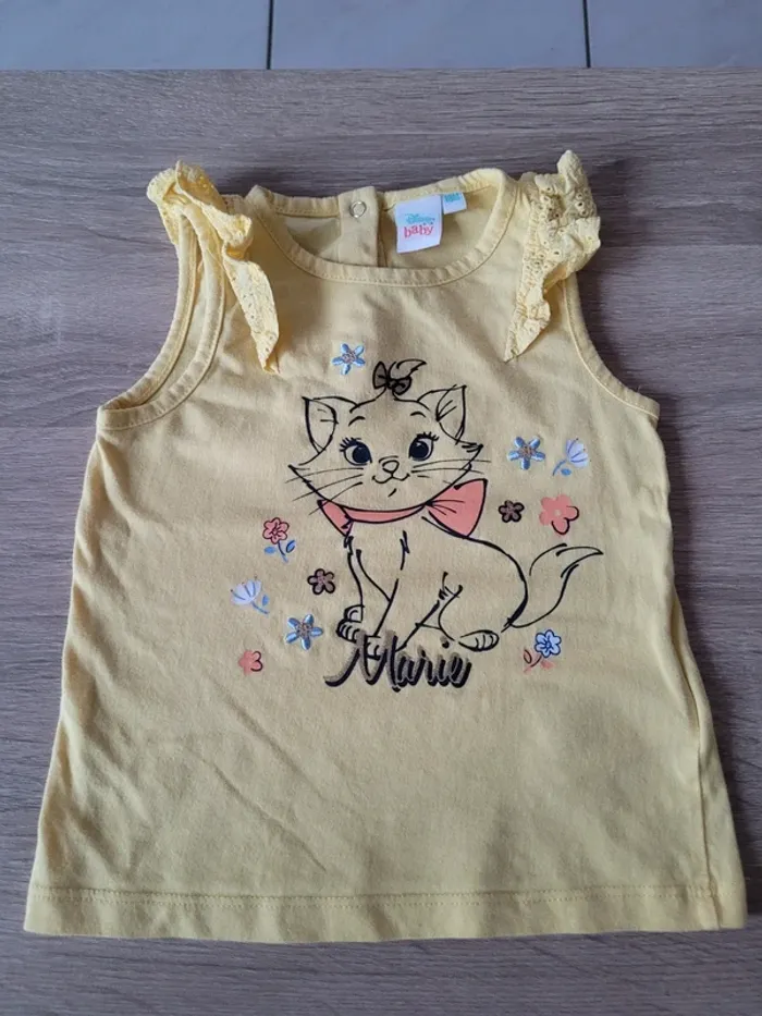 Vend lot de 2 tee-shirts manches courtes et sans manches Disney Chat Marie fille taille 18 mois en très bon état.