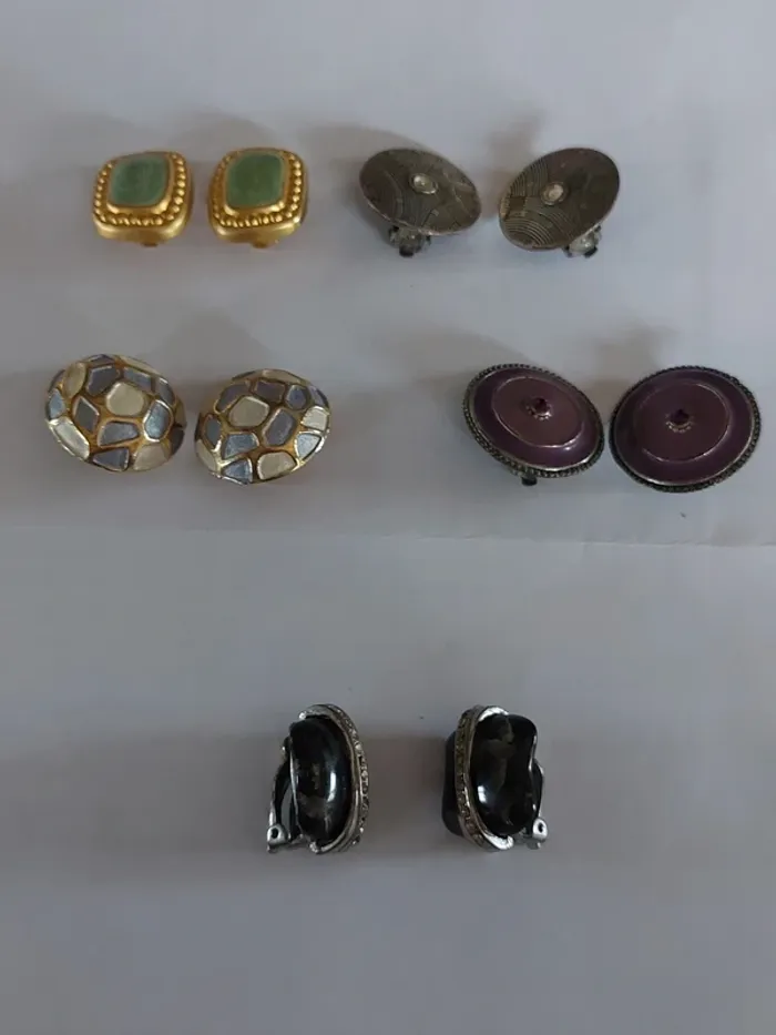 Lot de 5 paires de boucles d'oreilles vintages à pinces - photo numéro 1