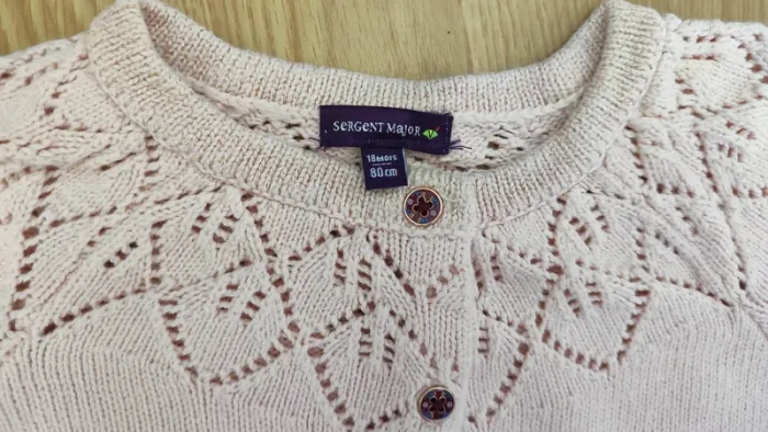 gilet taille 18 mois 80 cm rose clair et fil doré brillant Sergent Major #rosalee18mois