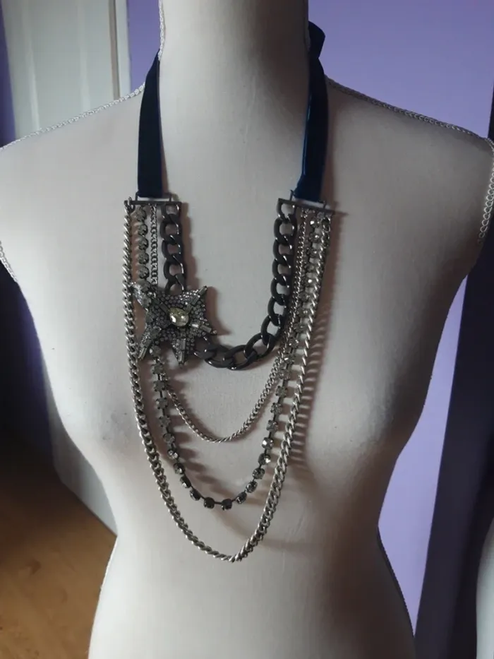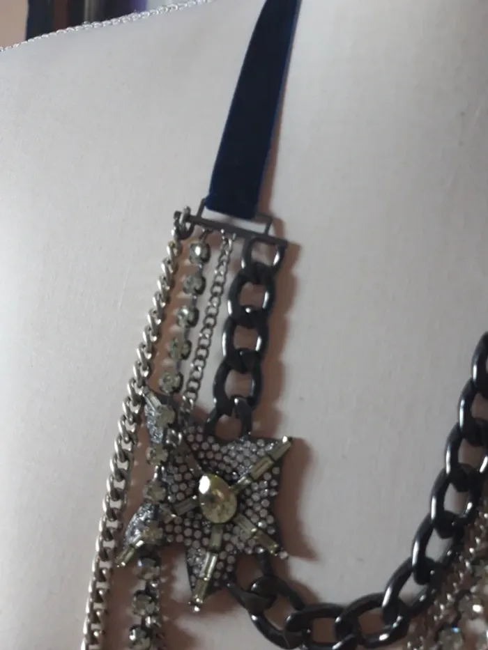 Très joli collier long chaines et strass