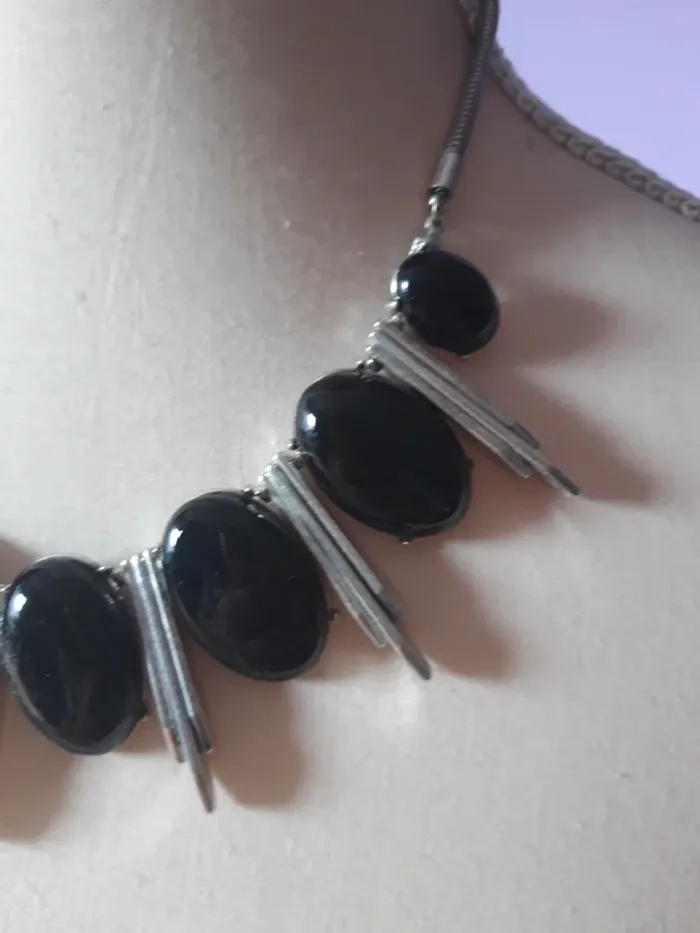 Joli collier ras de cou argenté et noir - photo numéro 2