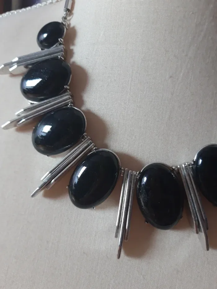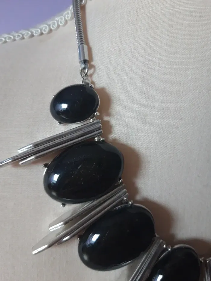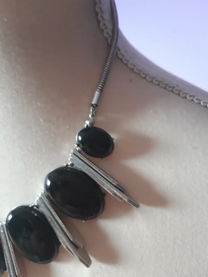 Joli collier ras de cou argenté et noir - photo numéro 6