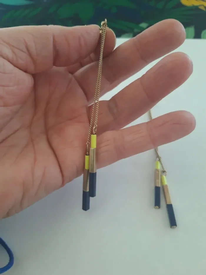 Pour oreilles percées Excellent état Portées 1 fois Dorees, bleues et jaunes #dk73bijoux #dk73accessoires