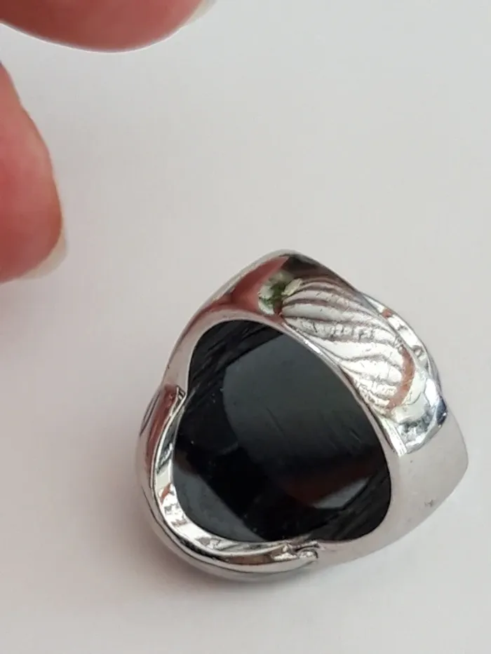 Jolie bague fantaisie argentée et noire taille 54 - photo numéro 7