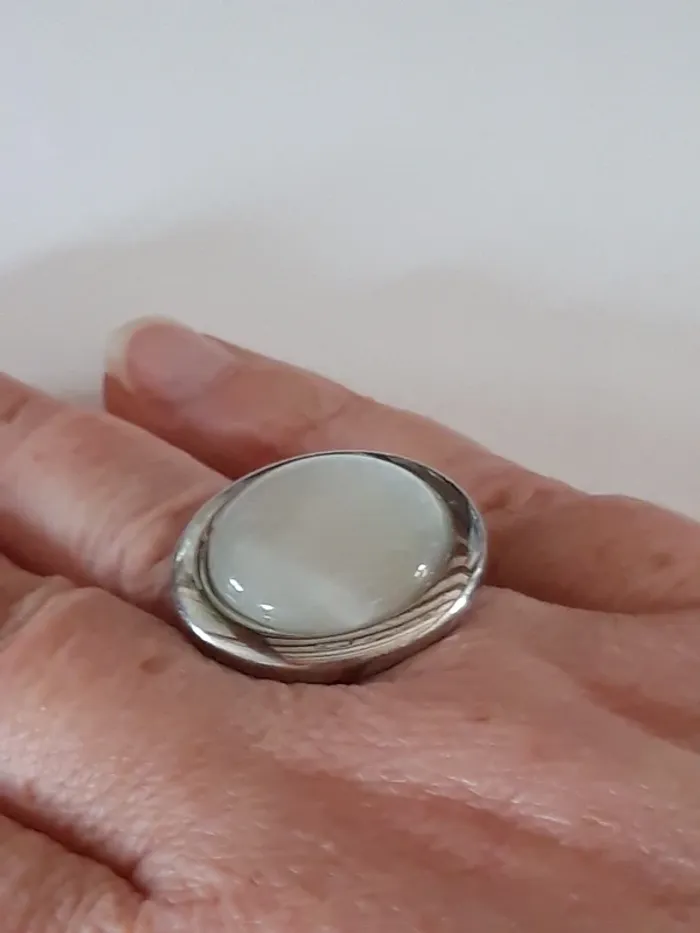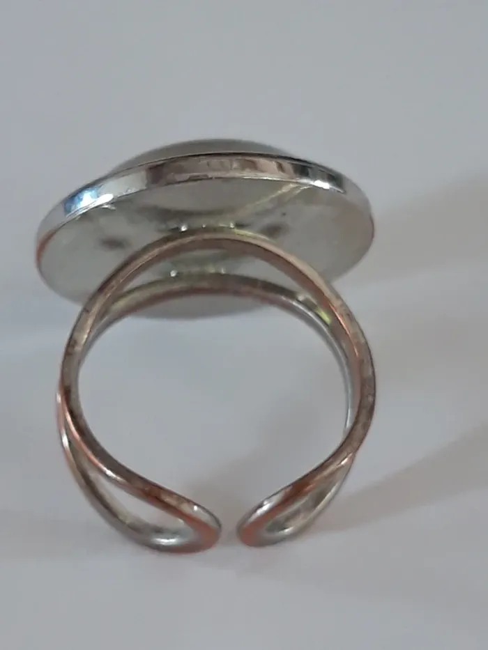 Bague fantaisie ajustable pierre ronde nacrée - photo numéro 1