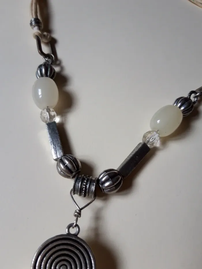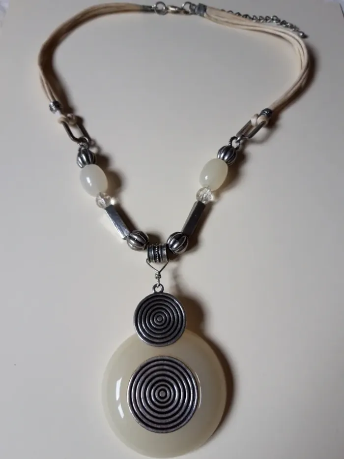 Collier vintage pendentif beige et argenté - photo numéro 1