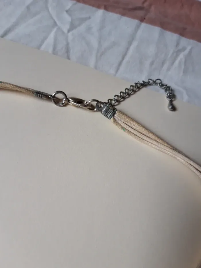 Collier vintage pendentif beige et argenté - photo numéro 2