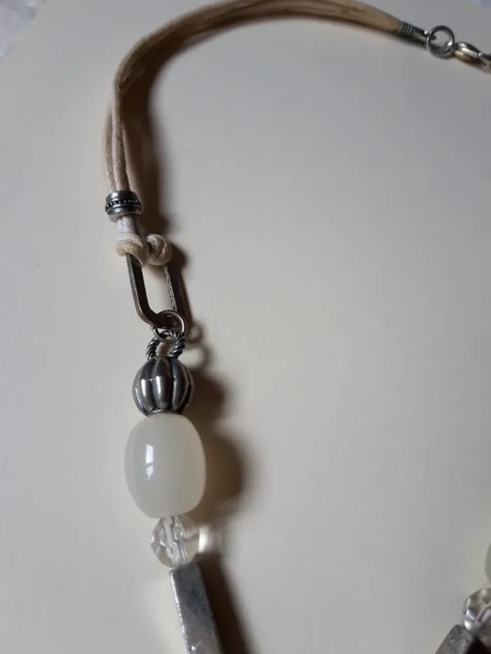 Collier vintage pendentif beige et argenté - photo numéro 6