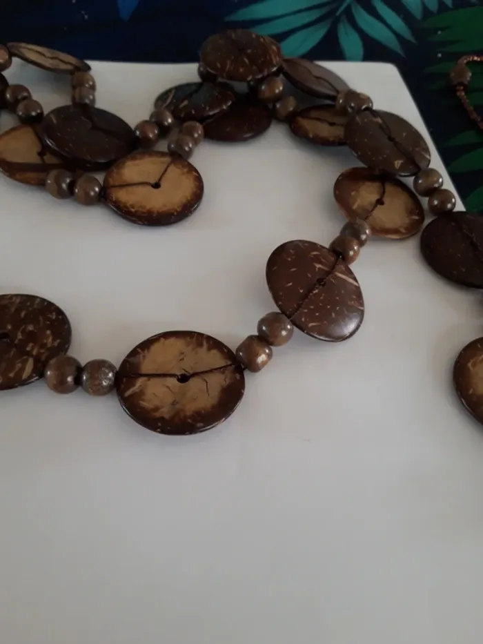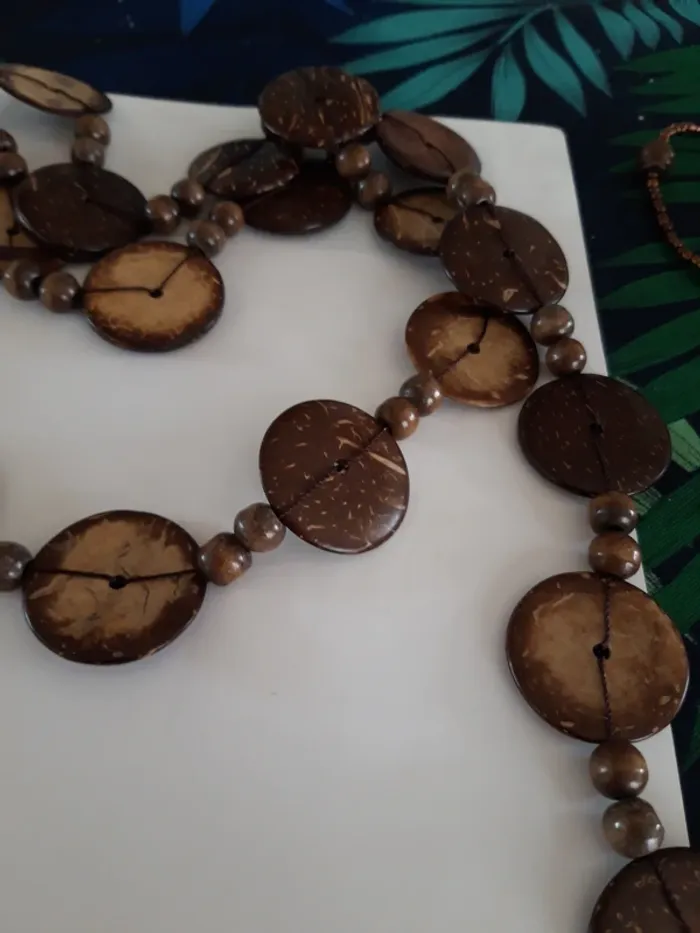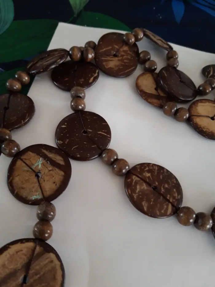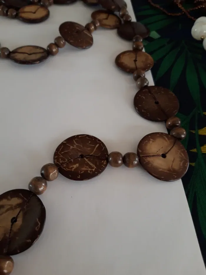 Très long sautoir vintage effet bois - photo numéro 1