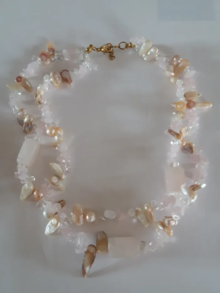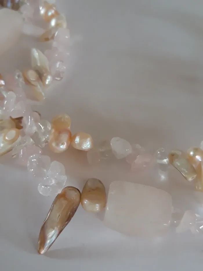 Très joli collier vintage en pierres rose pâle - photo numéro 1