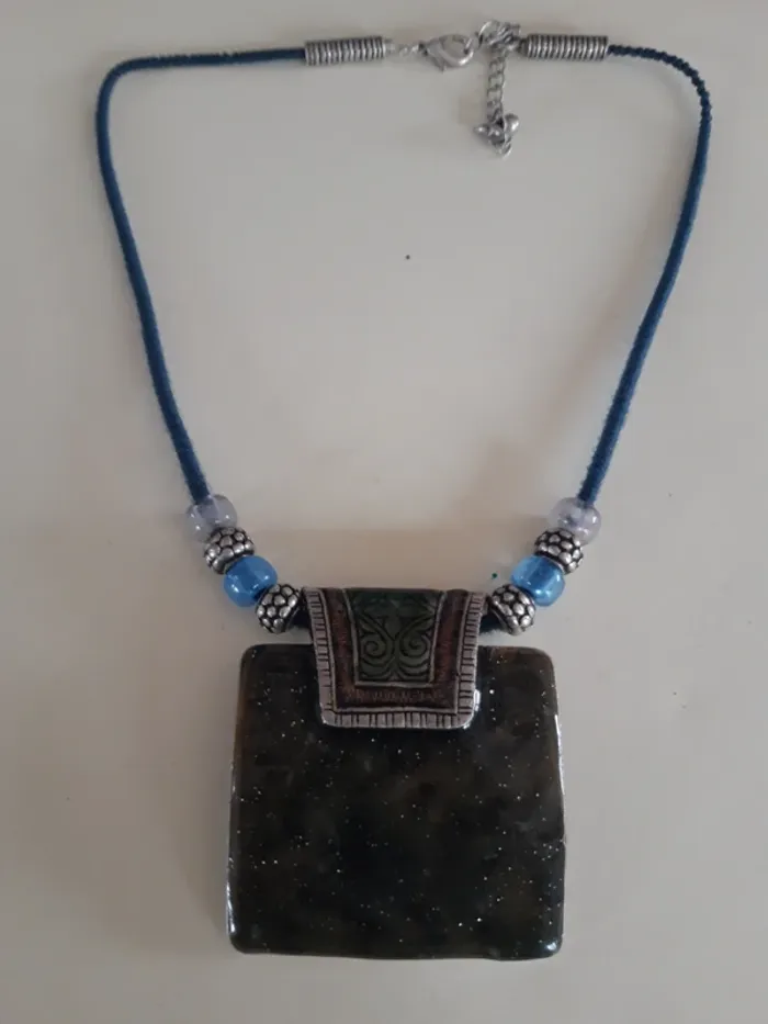 Joli collier vintage pendentif style émaux - photo numéro 1