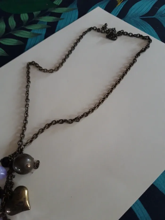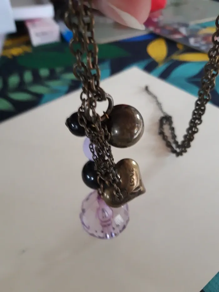 Sautoir pendentifs rose/mauve et noirs - photo numéro 4