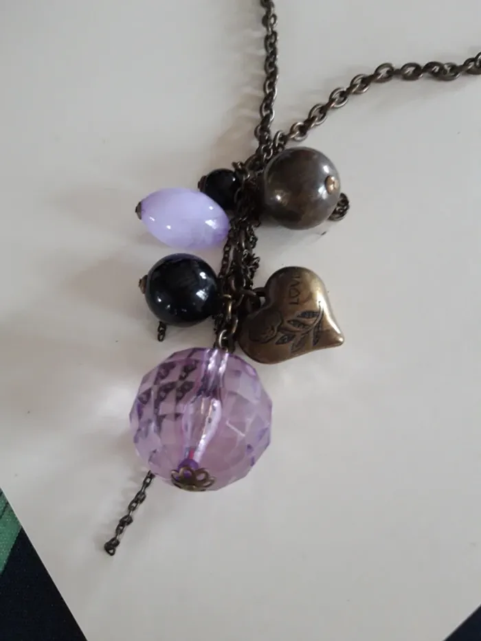 Sautoir pendentifs rose/mauve et noirs - photo numéro 1
