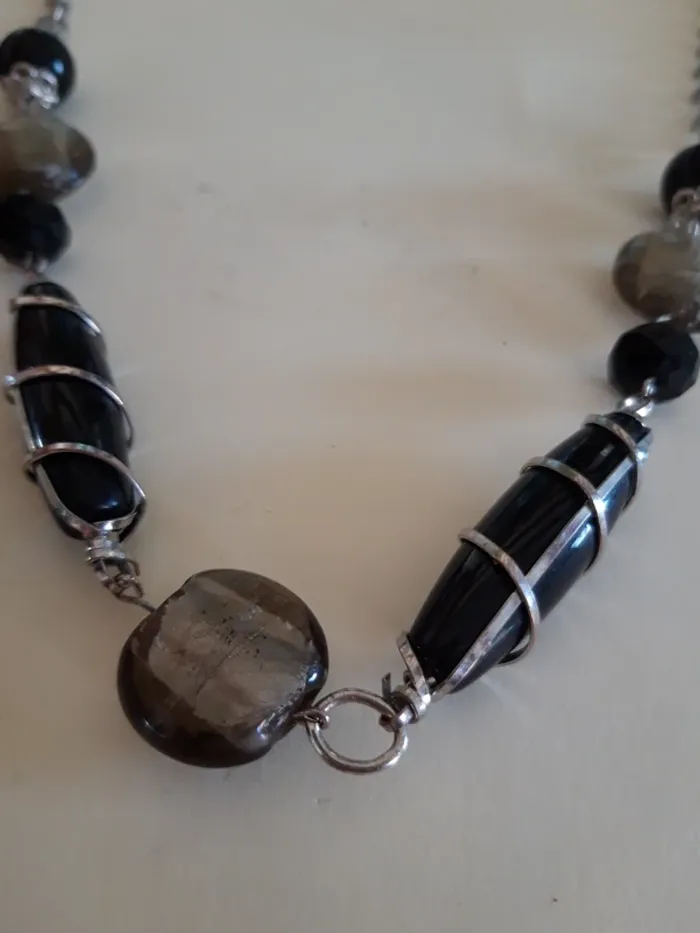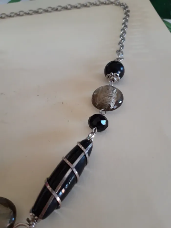 Collier vintage fantaisie argenté et noir - photo numéro 1