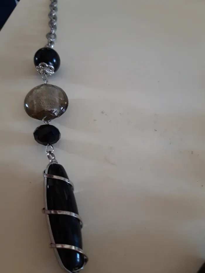 Collier vintage fantaisie argenté et noir - photo numéro 2