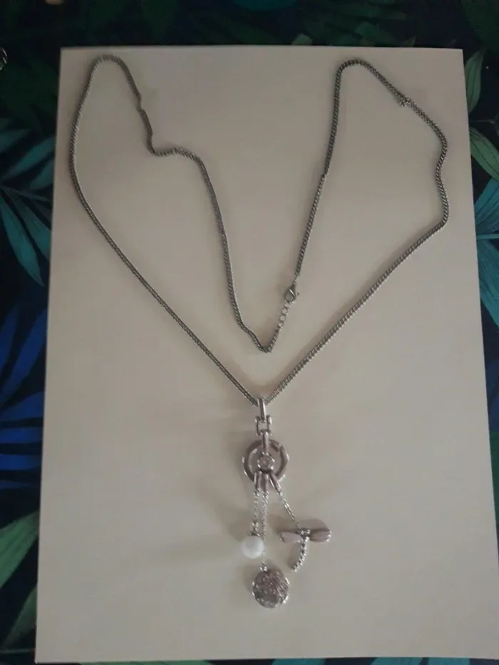 Sautoir fantaisie argenté pendentifs variés - photo numéro 3