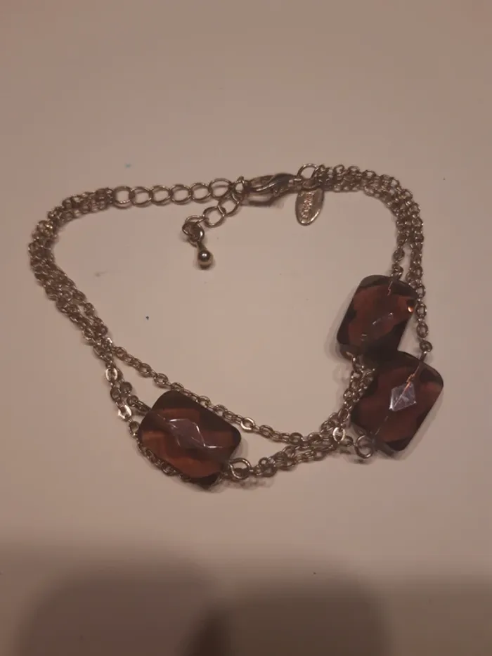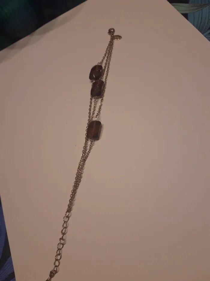 Bracelet fantaisie doré pierres marrons reflets mauves - photo numéro 1