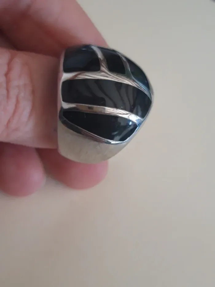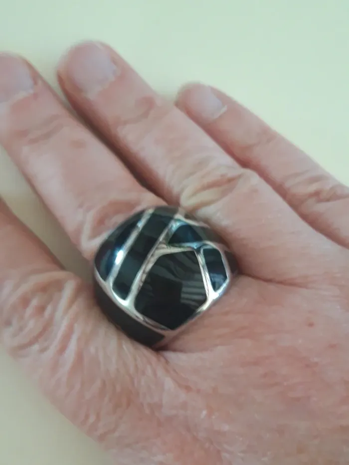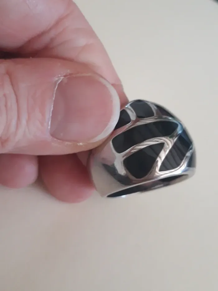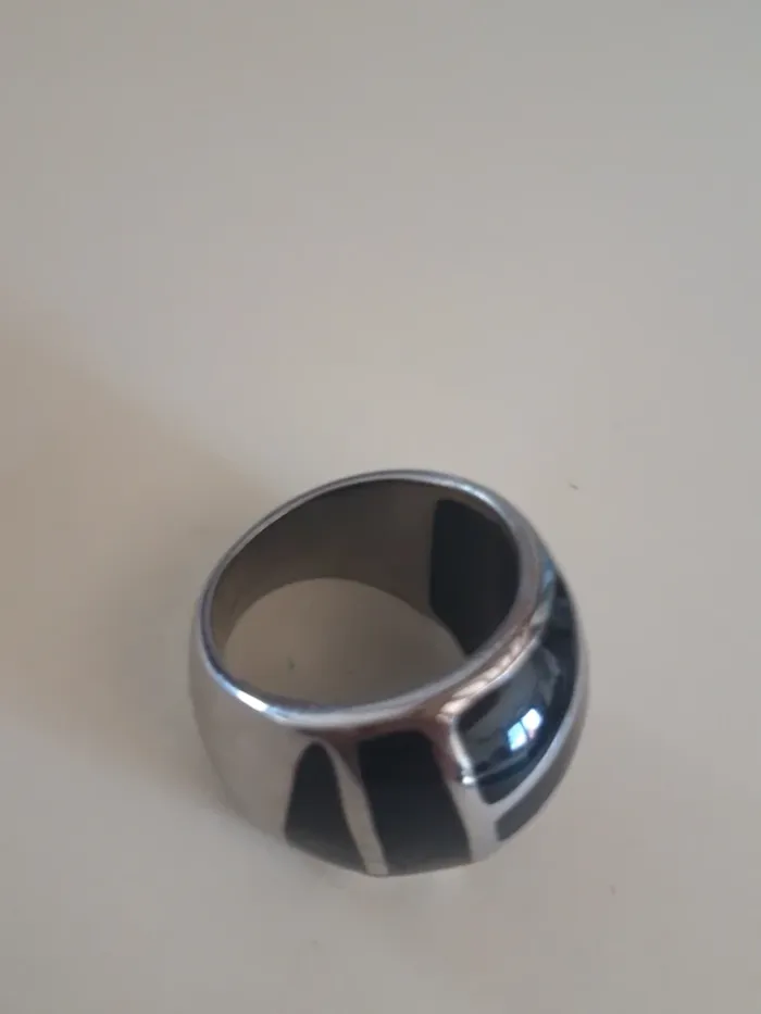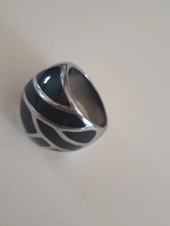Jolie bague fantaisie argentée et noire 60 - photo numéro 1