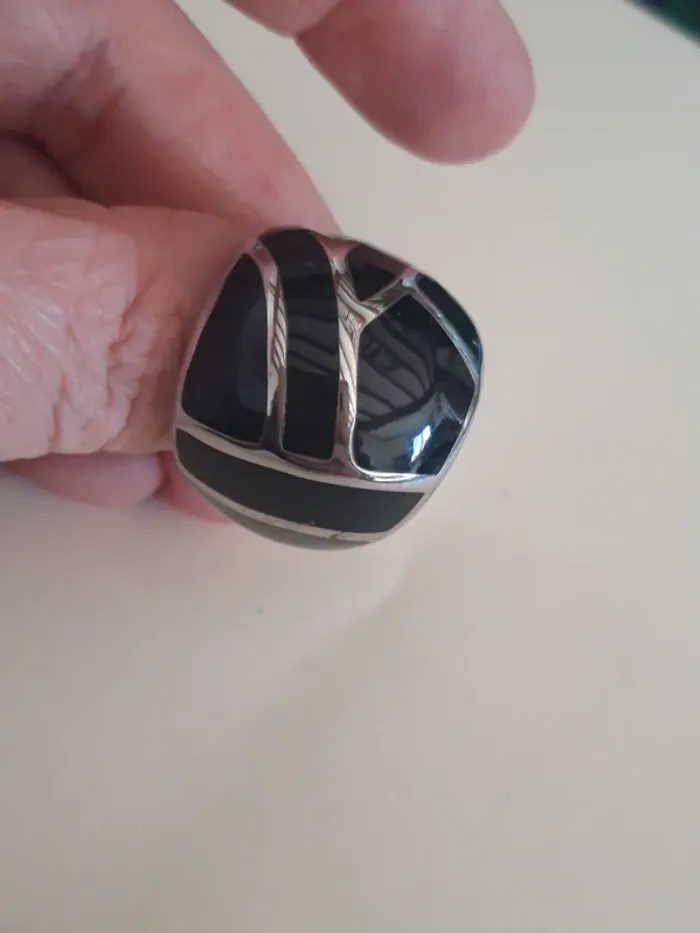 Jolie bague fantaisie argentée et noire 60