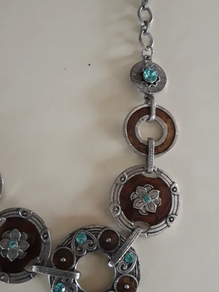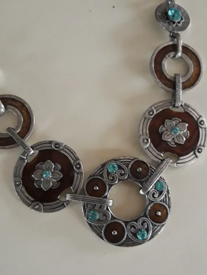 Collier fantaisie ancien argenté et marron - photo numéro 3