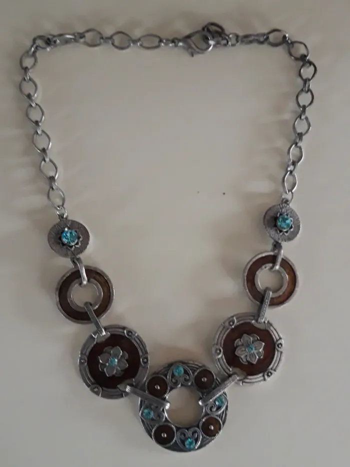 Collier fantaisie ancien argenté et marron - photo numéro 1