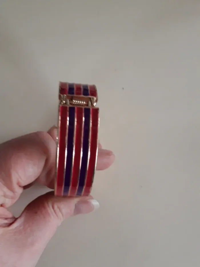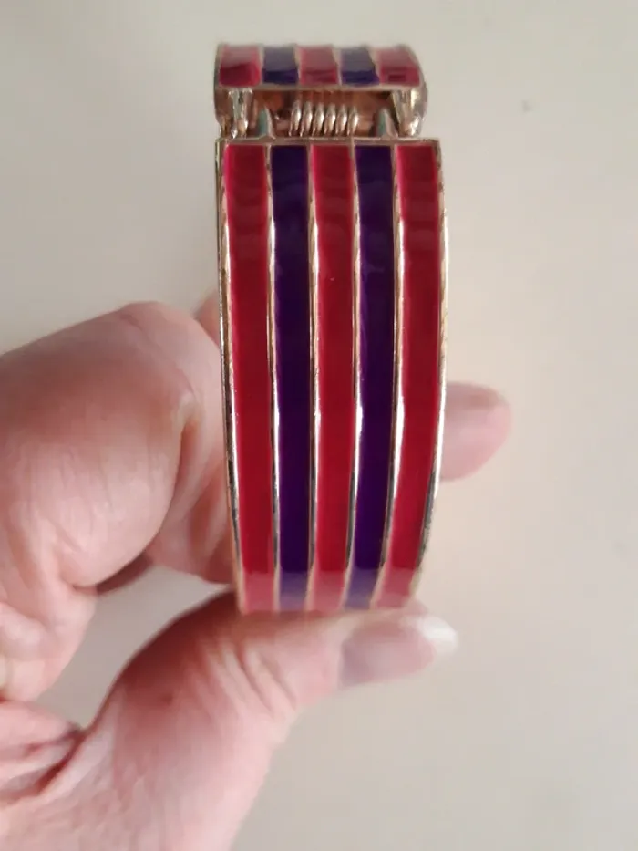 Bracelet fantaisie rigide doré mauve et rose - photo numéro 1