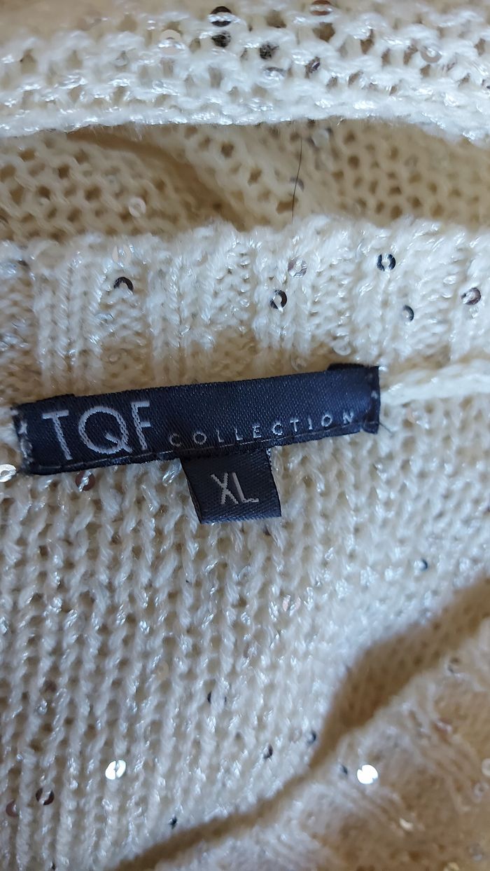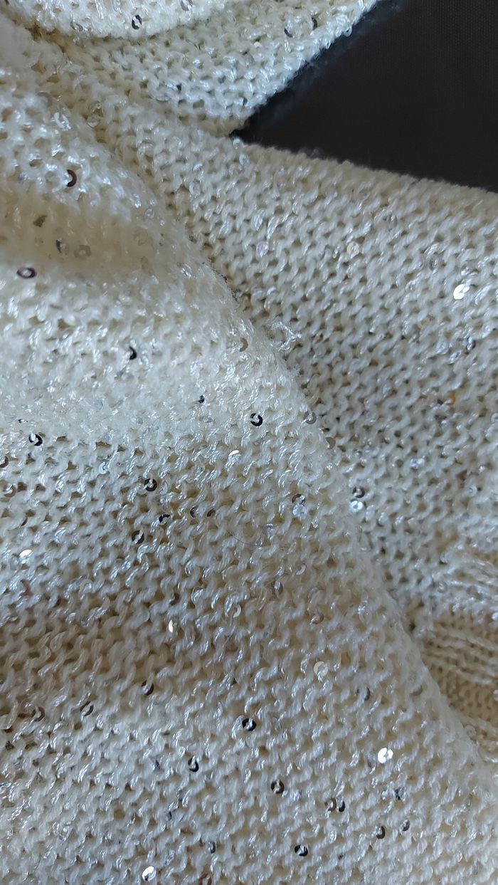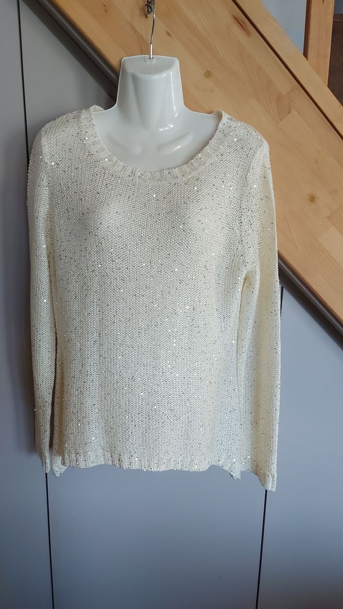 Pull crème avec sequins argentés TQF Collection Taille XL B état, quelques fils tirés, voir photos