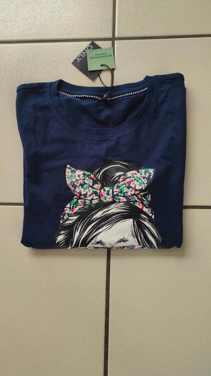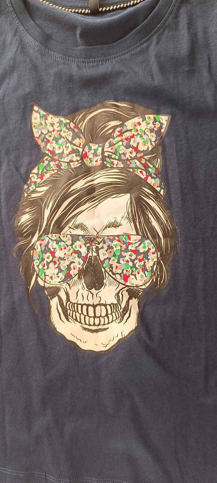 tee shirt bleu "tête de mort" ONLY taille 36 NEUF - photo numéro 8