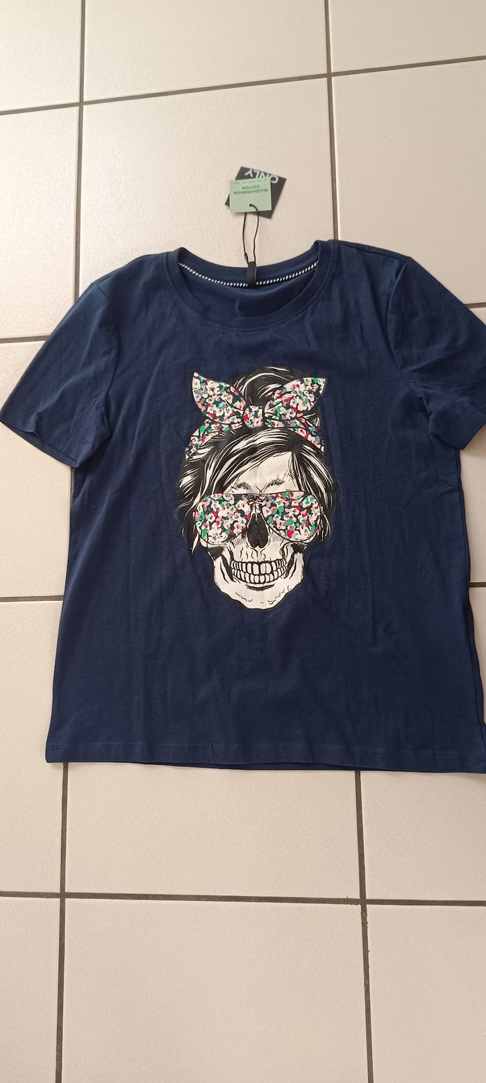tee shirt bleu "tête de mort" ONLY taille 36 NEUF composition : 100% coton et lavage : 30 degrés