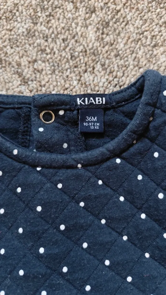 Robe bleue marine à pois blancs, épaisse (un peu molletonnée) en 3 ans