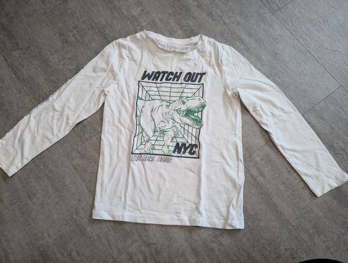 Dinosaures Blanc Petite tâche sur la manche (voir dernière photo) Sinon état impeccable Porté 1x #tiffanyostertag_garçon6ans #tiffanyostertag_garçon7ans