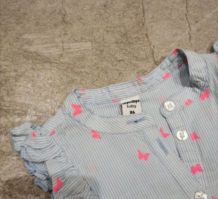 Rayé bleu clair avec papillons roses Débardeur chic et habillé Jamais porté juste lavé 86 cm 12 mois 18 mois Marinière bleu et blanc #tiffanyostertag_fille12mois #tiffanyostertag_fille18mois