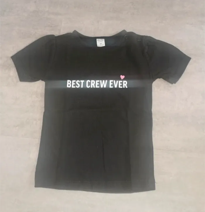 T-shirt noir Best crew ever Jamais porté juste lavé 92 cm 18 mois 24 mois #tiffanyostertag_garçon18mois #tiffanyostertag_garçon24mois #tiffanyostertag_fille18mois #tiffanyostertag_fille2ans