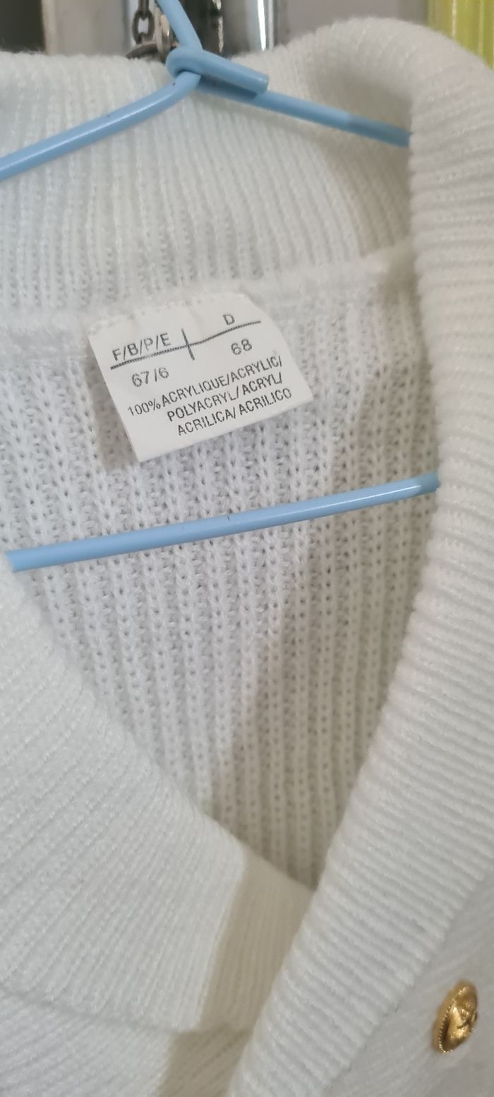 Gilet blanc Taille 6 mois En très bon état Avec 4 boutons Manches longues