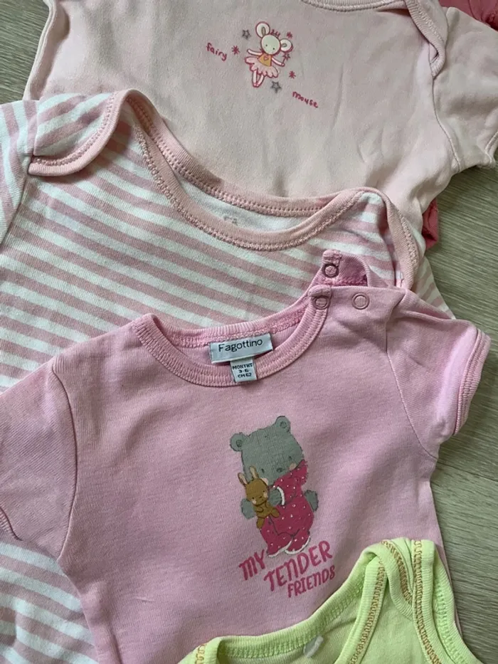 Lot de 8 bodies pour été Taille 62 cm adapté pour 3-6 mois Marque multiples Du bon état à très bon état général Le body vert à des traces d’usure au niveau de la fermeture couche voir dernière photo #aicul05fille3mois #bodiesfille3mois
