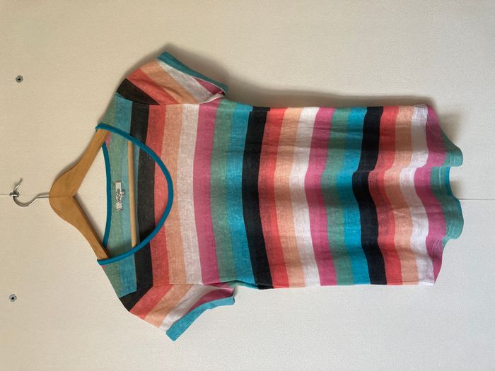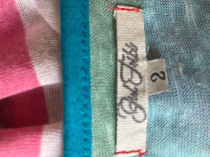 taille 2 correspond à S largeur au niveau des aisselles 42 longueur 64 cm étiquette coupée légérement transparent