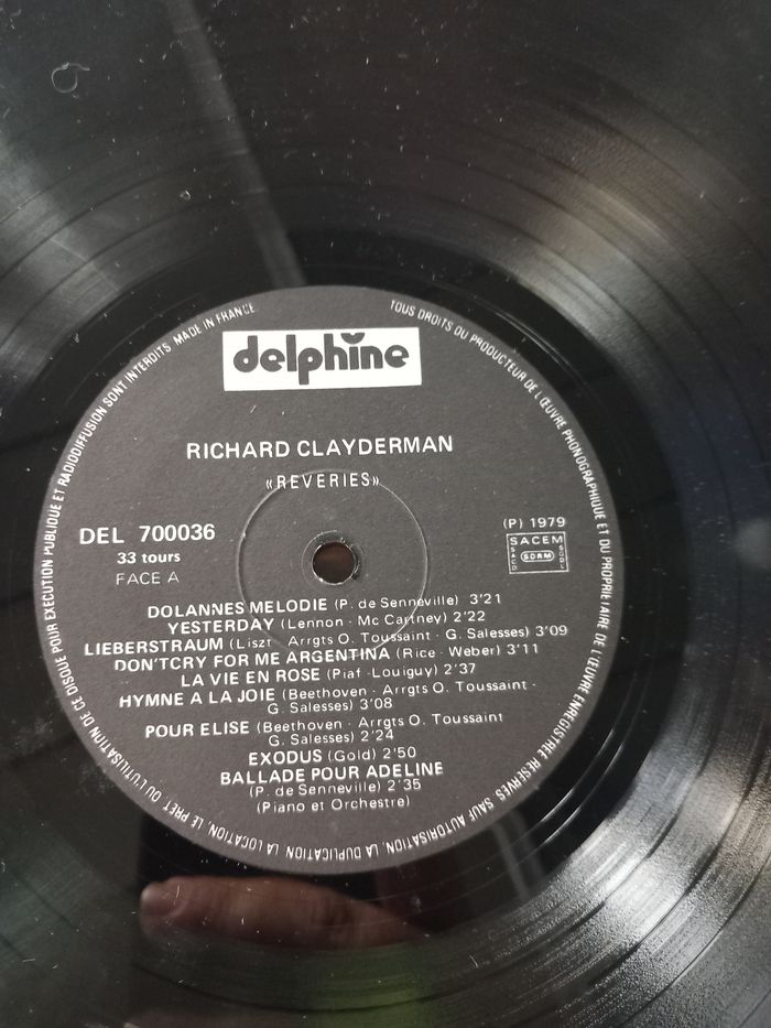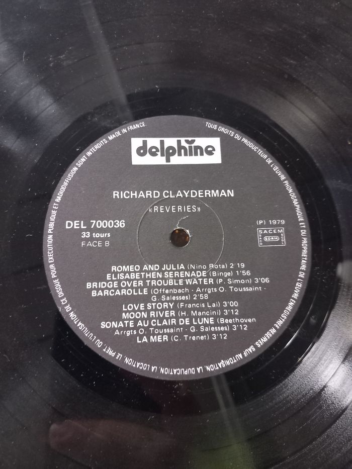 Disque vinyle 33 tours Artiste : Richard Clayderman Titre : Rêveries Face A 9 titres Face B 8 titres En bon état